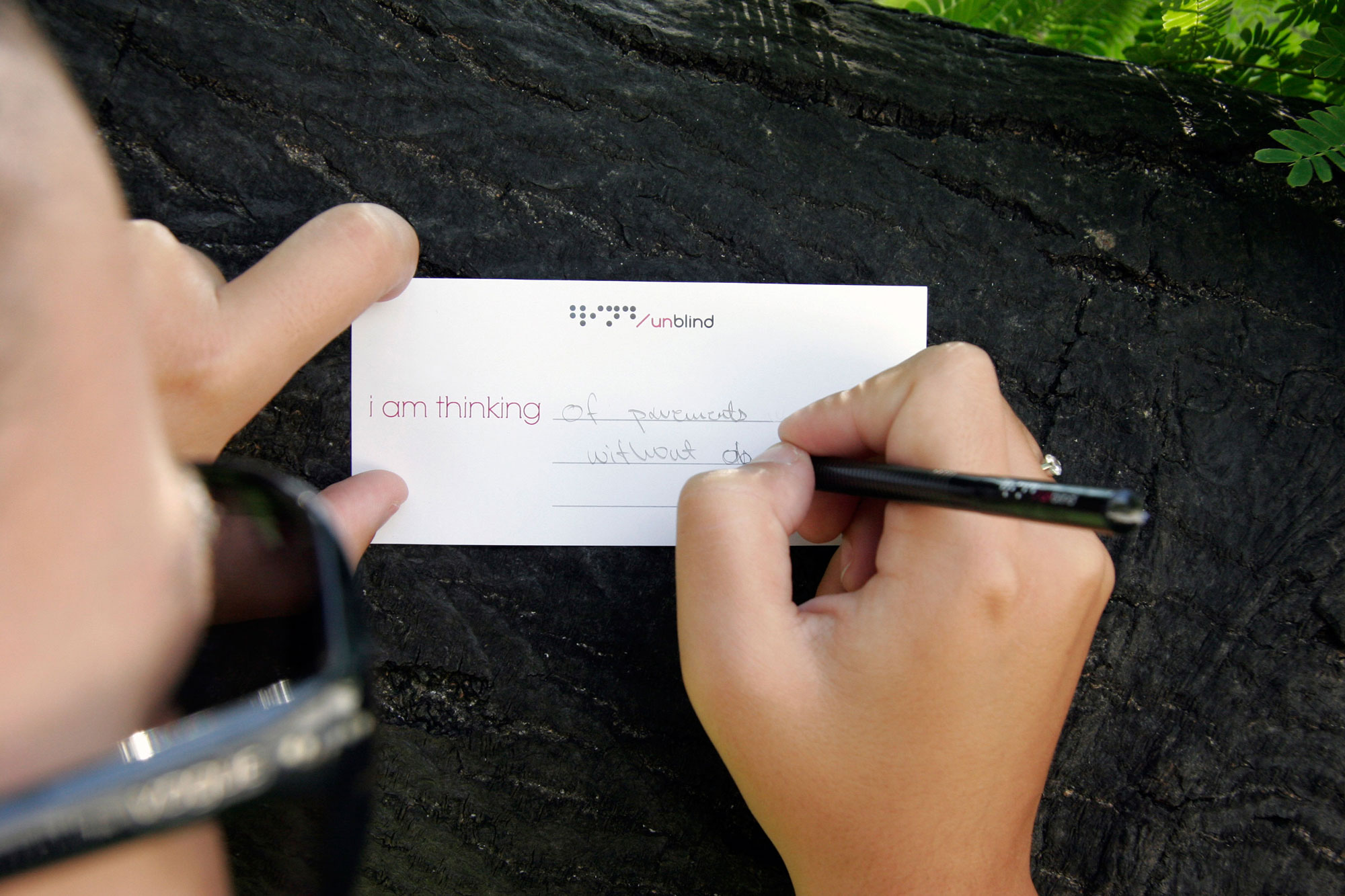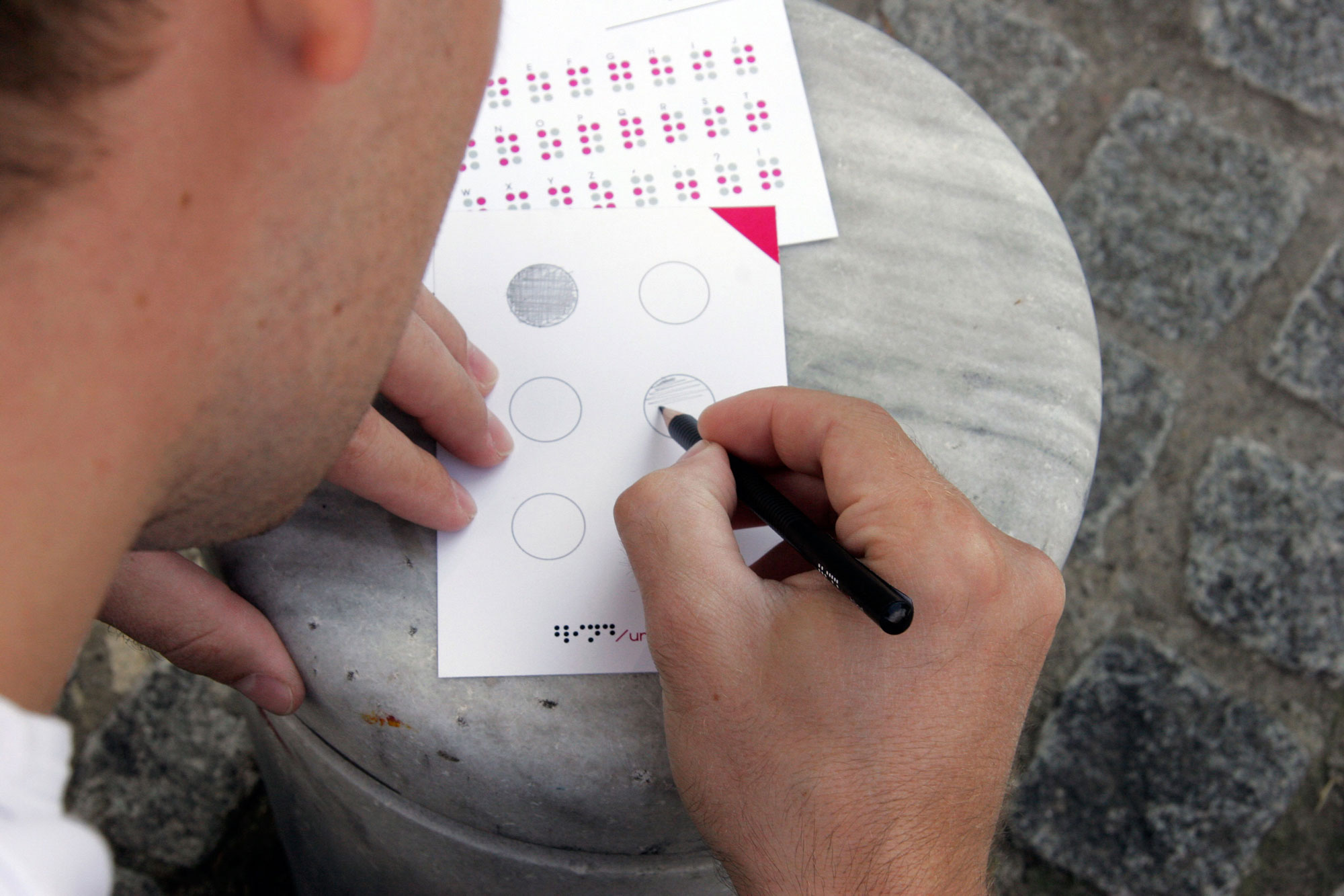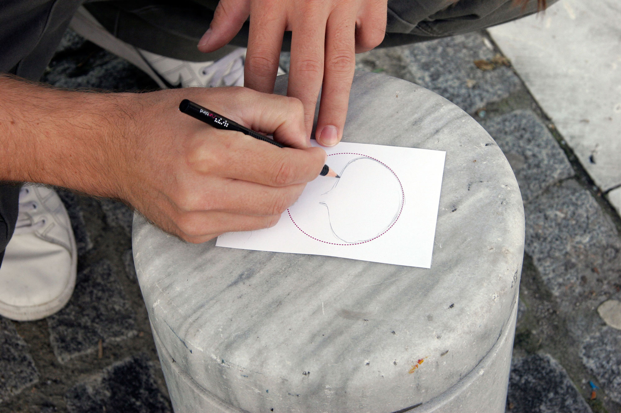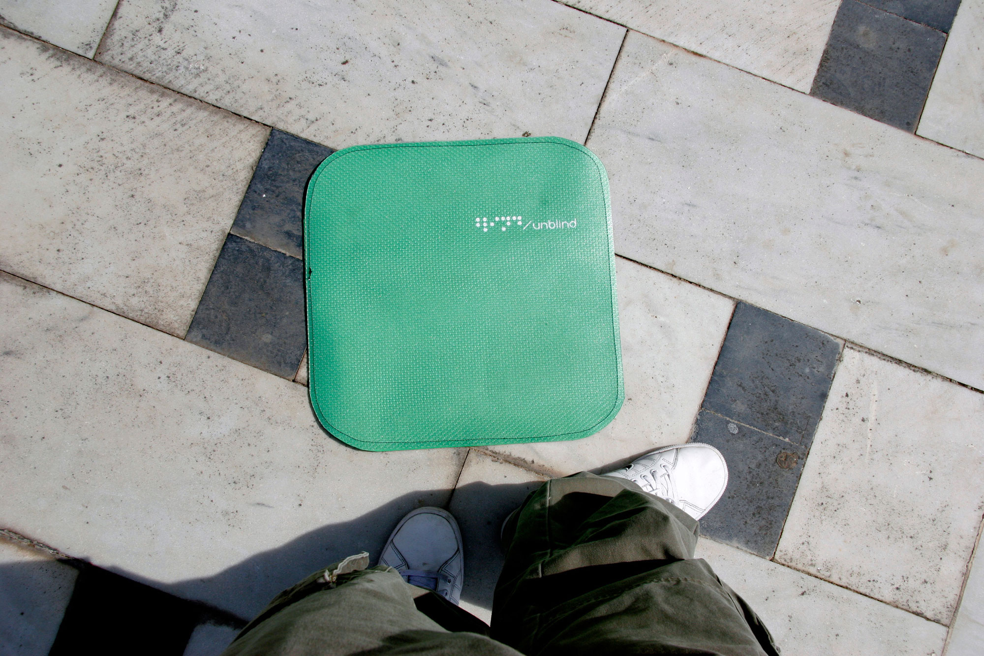 Unblind is an interactive walk towards fourteen constructions at the center of Thessaloniki. The aim of the project is to urge people to escape from the media and the one-way communication, encouraging them to see the modern society with a more realistic glance. The aim is for people to come closer regaining the ability of free expression and communication. Unblind constitutes Konstantinos Mouzakis' BA thesis for the TEI of Athens (BA Graphic Design).
